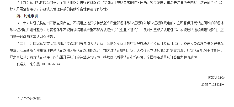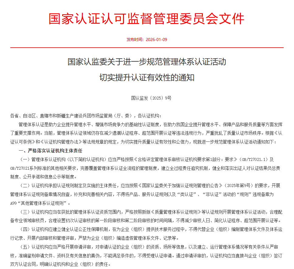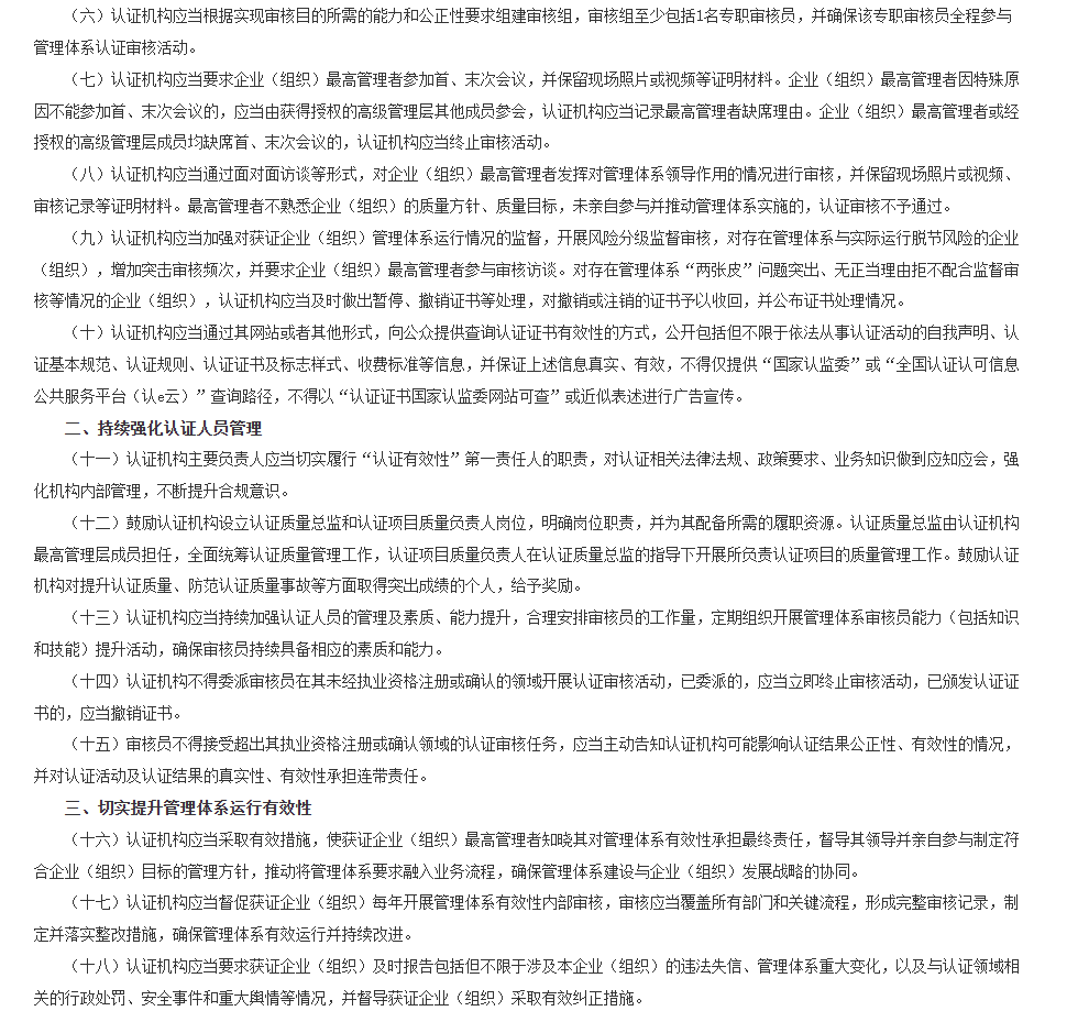 国家认监委关于进一步规范管理体系认证活动切实提升认证有效性的通知(转)